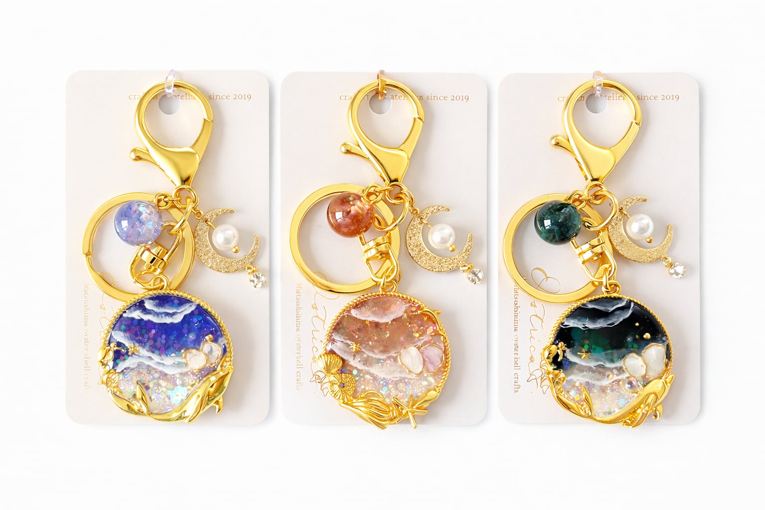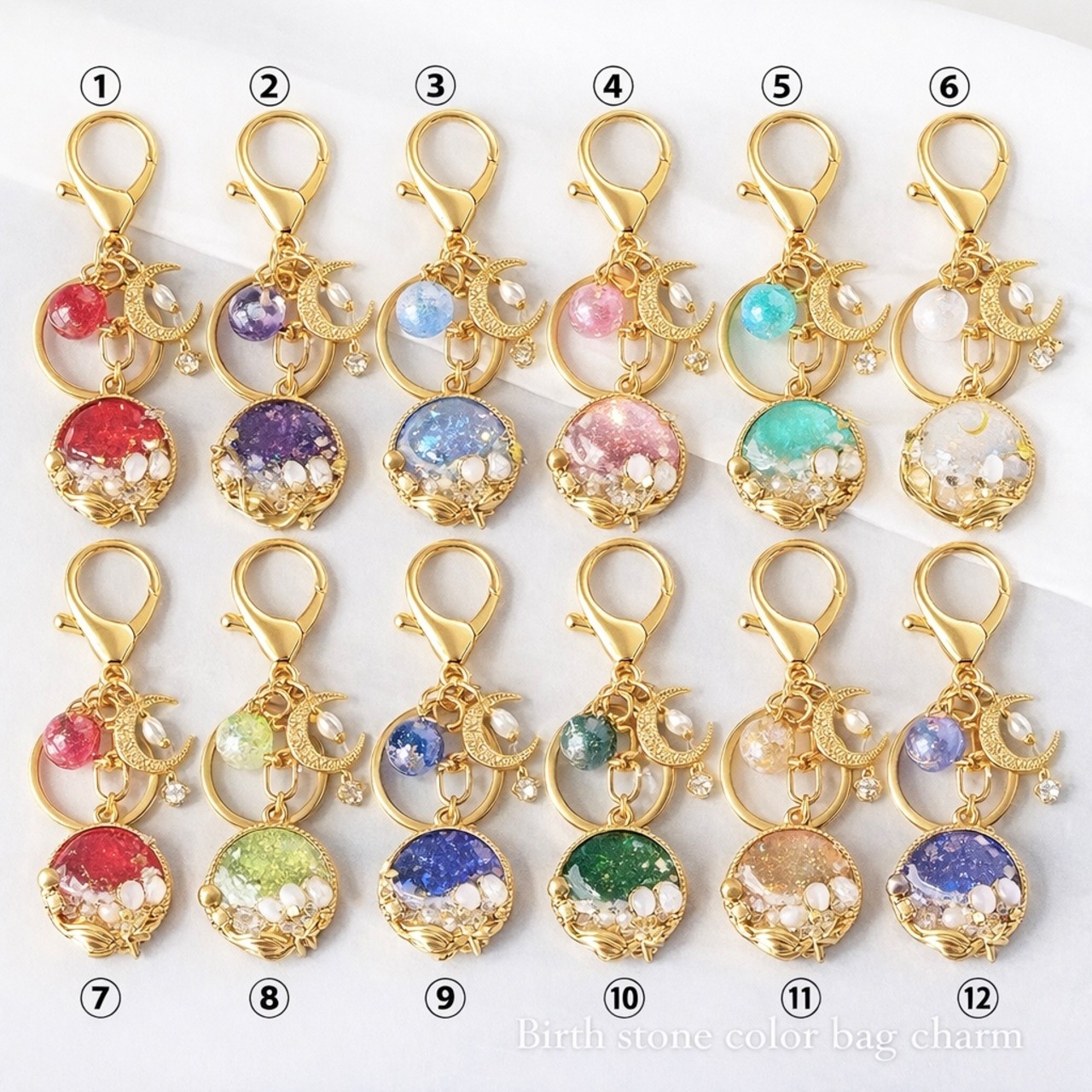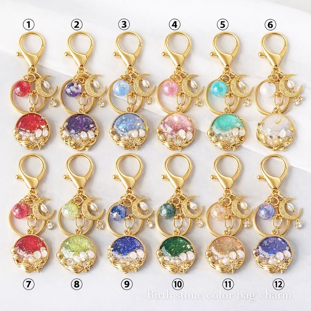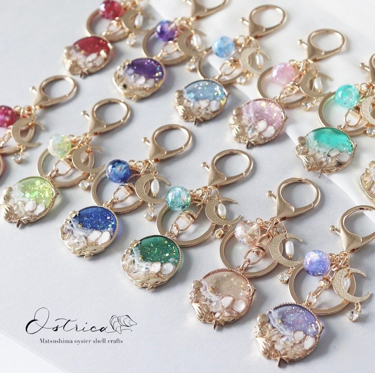 牡蠣殻キーホルダー誕生石カラー。